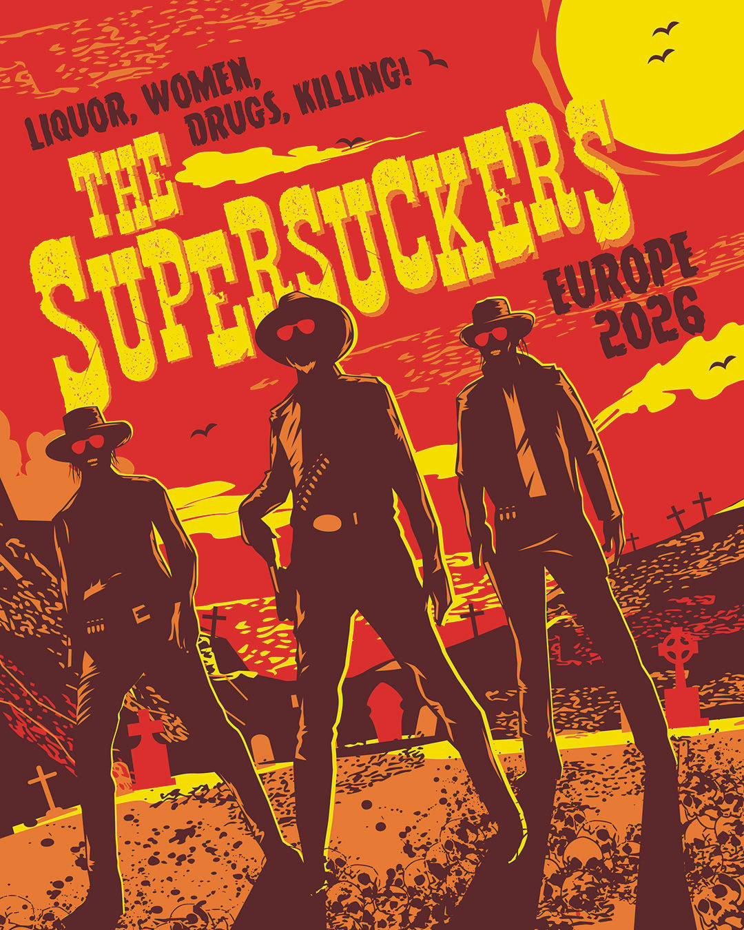 Mit mittlerweile mehr als fünfunddreißig Jahren auf dem Tacho und inzwischen als Trio unterwegs, werden sie ihre Fans mit Liedern vom aktuellen Album "Liquor, Women, Drugs and Killing" sowie mit alten Klassikern erfreuen, einige Country-Songs werden ebenso zum Programm gehören wie jede Menge Coolness.